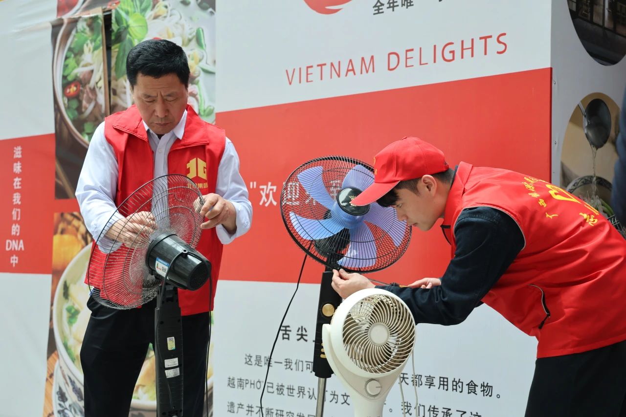 志愿者们搭起检修台,摆出工具箱,拿出测量仪,为入驻商家员工、周边市民维修小家电,测量血压血糖、清洗风扇地垫等。活动当天累计服务人数30余人,得到大家一致点赞。