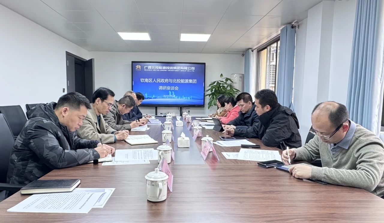 杨泓全介绍了北投能源集团在钦州市及北部湾区域的布局情况,并对钦南区政府一直以来的工作支持表示感谢。他提出,期望钦南区政府持续助力北投能源集团以及北投钦新能源公司的前行之路,进一步促使双方在集中式光伏、集中式风电等新能源项目的合作模式向纵深发展。同时,在数字经济领域探寻全新的合作切入点,开拓互利共赢的新局面。北投钦新能源公司负责人黄宏进就钦新公司2024年经营情况、2025年经营目标及在建新能源项目建设情况进行汇报。肖利富对北投能源集团为钦南区经济发展所注入的动力与贡献表示高度认可,并指出,钦南区政府会始终紧密跟踪北投钦新能源公司的发展动态,全力落实政策支持,主动协调并妥善解决企业在发展壮大进程中遇到的各类难题,助力企业发展跃上新台阶,在钦南区经济建设中发挥更为关键的作用。他强调,期待双方进一步拓展沟通渠道,深化在能源领域的项目开发合作,实现资源共享、优势互补,携手并肩为钦南区经济腾飞添砖加瓦。